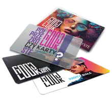 Wir stanzen von Visitenkarten mit Abmessungen von 90x50, 85x55 und 90x55mm, gedruckt mit beidseitig beschichtetem Karton 350g/m2, veredelt mit Laminat - matt, glänzend oder soft-touch. In unserem Angebot finden Sie auch gestenzte Visitenkarten mit selektivem 3D-Lack.