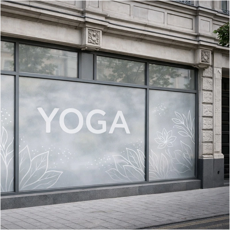 Dreijährige selbstklebende Folie für Anwendungen auf flachen, transparenten Oberflächen. Der Druck ist nicht deckend, was einen Bleiglas-Effekt auf Fenstern und Plexiglas ermöglicht.